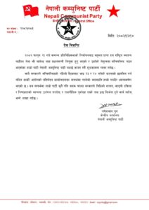 प्रेस विज्ञप्ति केन्द्रीय कार्यालयका तर्फबाट गणेशमान पुनद्वारा जारी गरिएको हो।