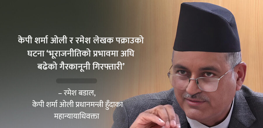 वरिष्ठ अधिवक्ता रमेश बडालले केपी शर्मा ओली र रमेश लेखकको पक्राउलाई ‘भूराजनीतिको प्रभावमा अघि बढेको गैरकानूनी गिरफ्तारी’ भनेका छन्।