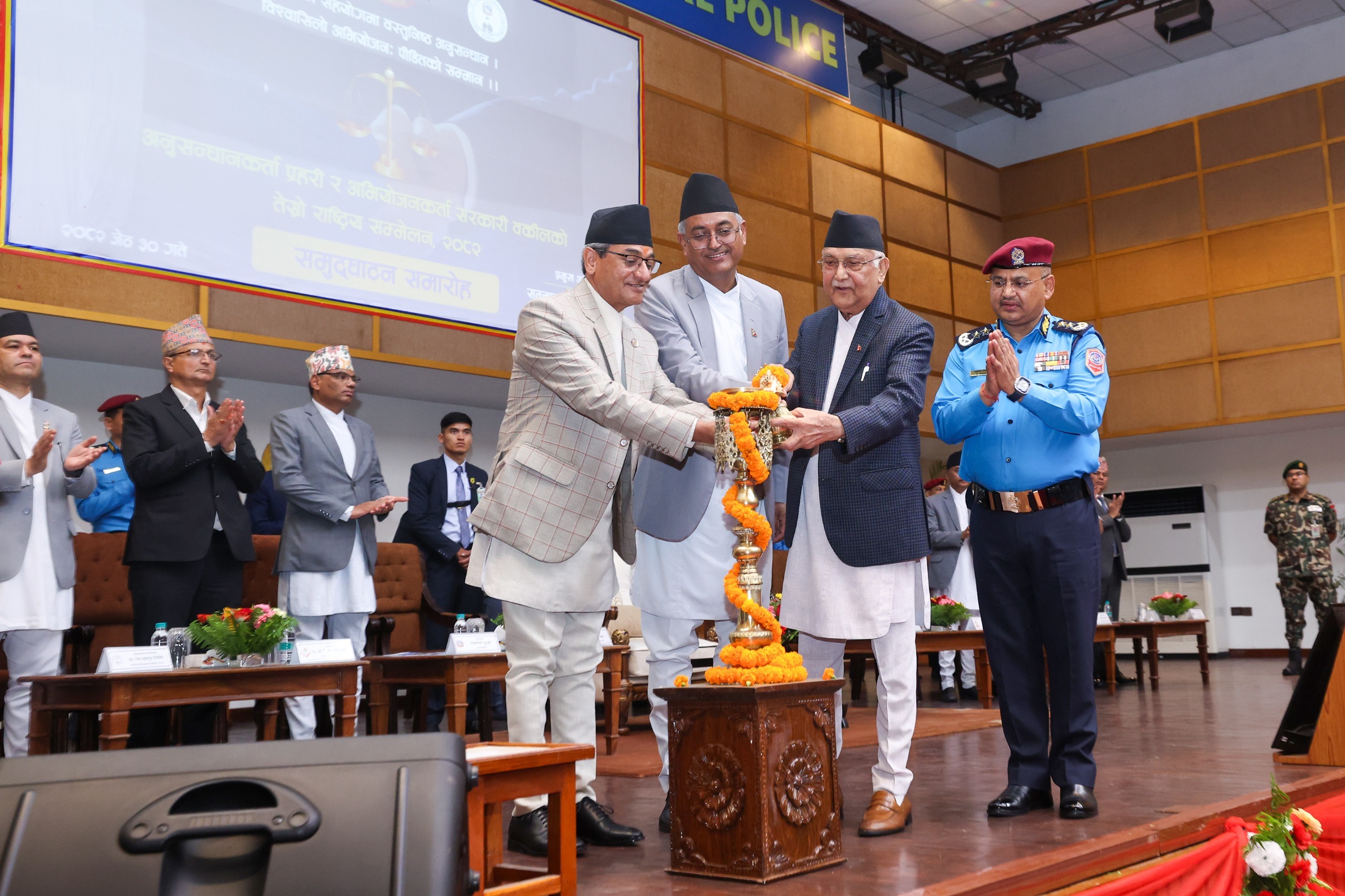 अनुसन्धानकर्ता प्रहरी र अभियोजनकर्ता सरकारी वकिलको तेस्रो राष्ट्रिय सम्मेलनको शुक्रबार उद्घाटन गर्दै प्रधानमन्त्री ओलीले अभियोजन र प्रमाणहरुका तथ्यले दुविधारहितरुपमा न्याय सम्पादन हुन सक्ने गरी अनुसन्धानज र अभियोजन गर्न आग्रह गर्नुभएको हो ।