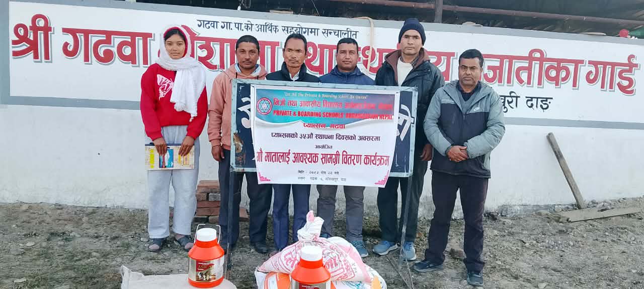 गढवा, २२ पुष। निजी तथा आवासीय विद्यालय अर्गनाइजेसन नेपाल (प्याब्सन) गढवाको आयोजनामा ३५औं स्थापना दिवसको अवसरमा गढवा गौशाला तथा स्थानीय प्रजातिको गाई संरक्षण केन्द्रलाई आवश्यक सामग्री सहयोग गरिएको छ।