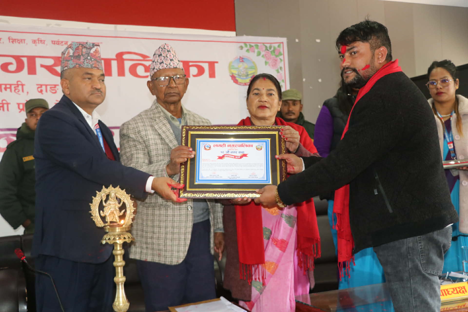 देउखुरी, २४ पुस ।पत्रकार एवम् सर्प उद्दारकर्ता शिवु खनाल सम्मानित हुनु भएको छ । बिहिवार लमही नगरपालिकाकाे १८ औँ नगर सभाकाे अवसरमा पत्रकार एवम् सर्प उद्दारकर्ता खनाल वर्ष उत्कृष्ट वन्यजन्तु संरक्षणकर्मी पुरस्कार २०८२ सहित सम्मानित हुनु भएको हाे ।