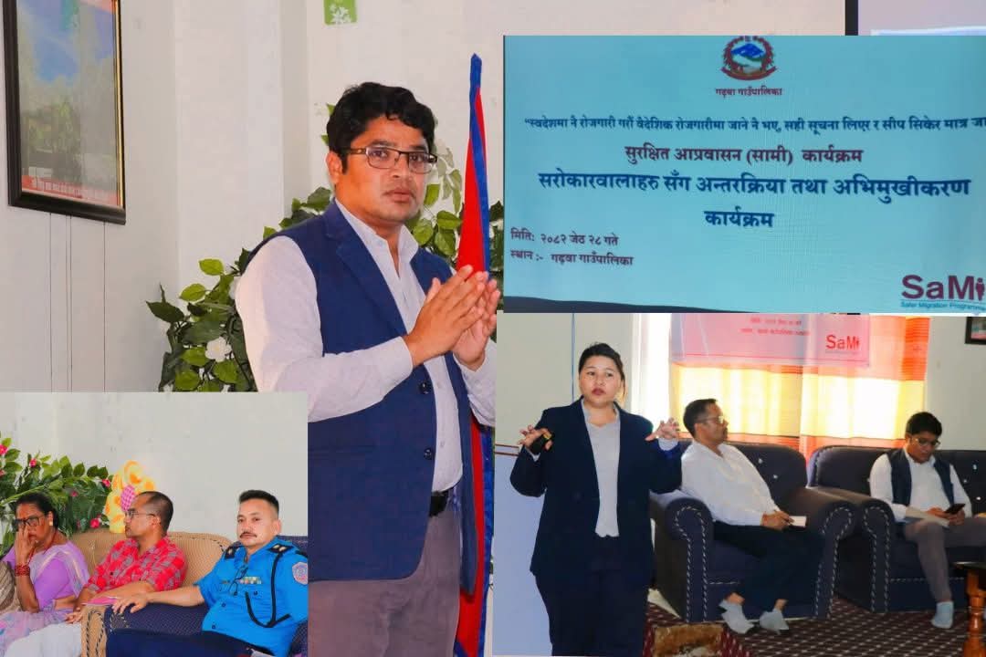 गढवा २९ जेठ। सुरक्षित आप्रवासन सामी कार्यक्रम अन्तर्गत आज बिहिवार गढवा गाउँपालिकामा सरोकारवालाहरु संग अन्तक्रिया तथा अभिमुखिकरण कार्यक्रम सम्पन्न भएको छ। गढवा गाउँपालिकाको आयोजनामा स्वदेशमा नै रोजगारी गरौ, बैदेशिक रोजगारीमा जाने नै भए सहि सूचना लिएर र सिप सिकेर मात्र…