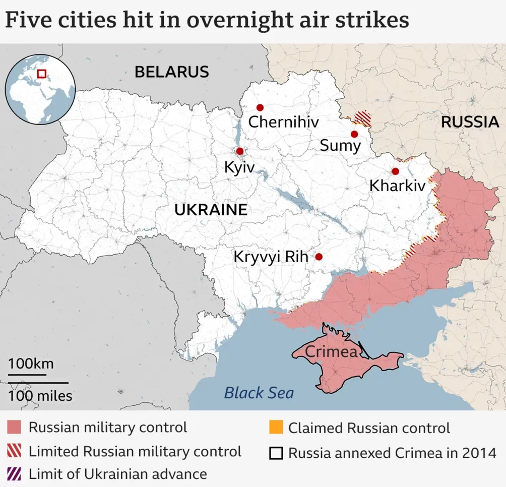 A pall of acrid smoke hung over Kyiv on Friday morning following a night of intensive Russian strikes that hit almost every district of the Ukrainian capital, injuring 23 people, officials say. The hours of darkness were punctuated by the…